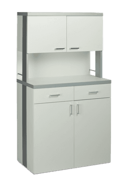 Modern dumbwaiters on castors made of laminated wood for the restaurant hall with aluminium-look details. Models with 2 or 3 soft closing doors with inner shelf, and upper part closed by doors. Instead of drawers, dumbwaiters can be equipped with an open 6 compartments cutlery holder (opt. PP/F). They can be provided with a reinforced base with bigger castors (Ø125mm) and handle (B/R) and extractable hopper mounted on rails (opt. TR).