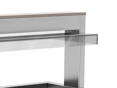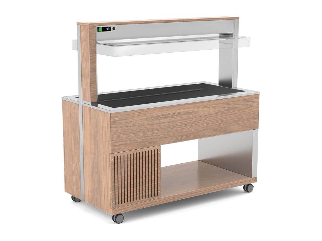 Buffets with laminated wood structure, available with static or fan assisted refrigeration. The ventilation grids of the compressor unit are cut directly into the wooden structure for elegant visual continuity.