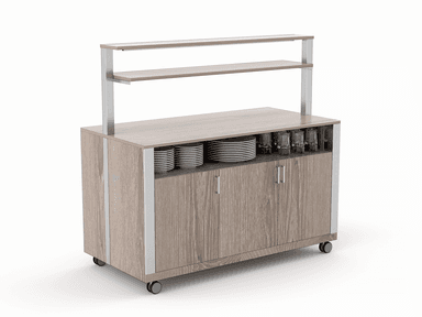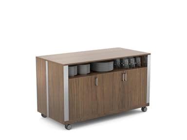 Neutral buffet to complete the self-service lines. Laminated wood structure and stainless steel details. According to the model 2 o 3 drawers with internal removable dividers or open plate-compartment. Both the doors and the drawers are equipped with a no-noise soft-closing . The N versions are without drawers to allow the mounting of the plate-holders. The lower compartment closed by doors is equipped by a middleshelf adjustable in height. The worktop can be made of formica or covered in stainless steel.