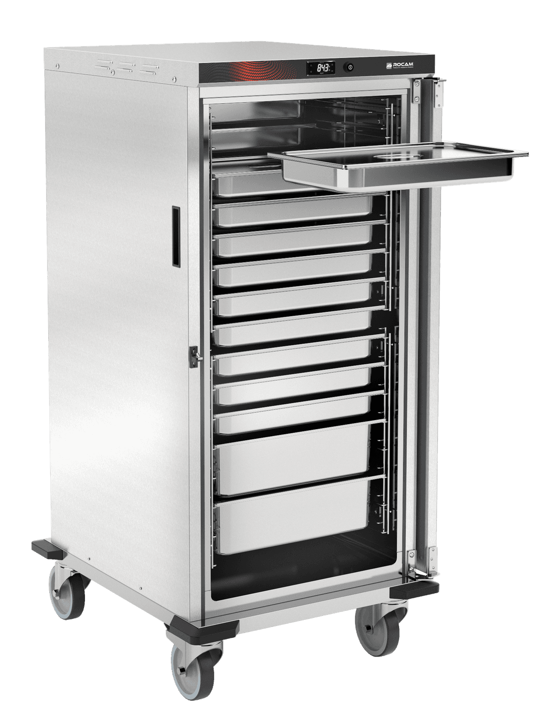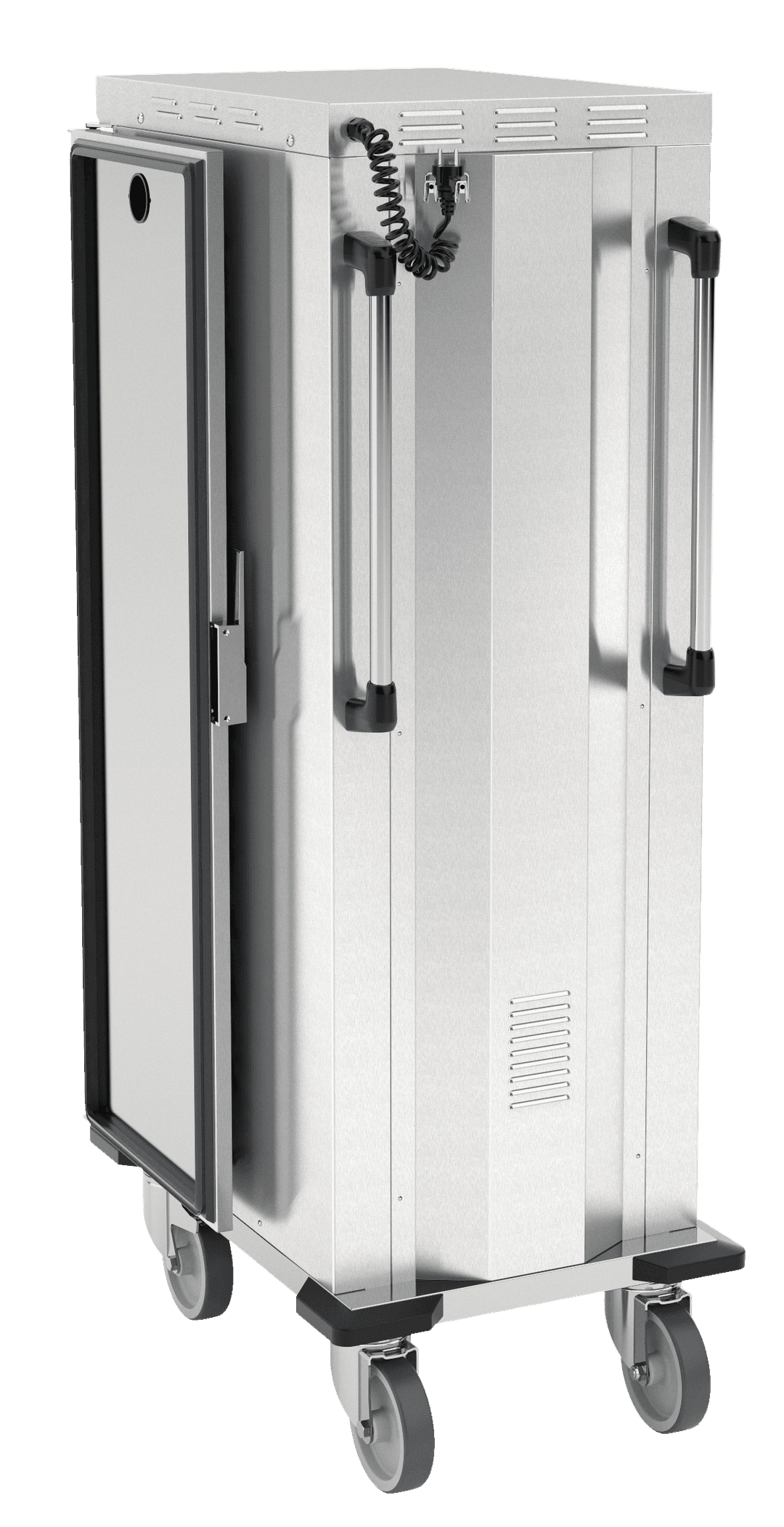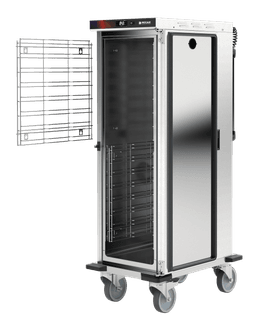 Heated cabinets on wheels in AISI 304 stainless steel perfect for meeting all space needs: from use in the kitchen, to transport to external locations or storage in small rooms. They can accommodate and guarantee the maintenance of GN 1/1 and 2/1 tubs, trays or trays.