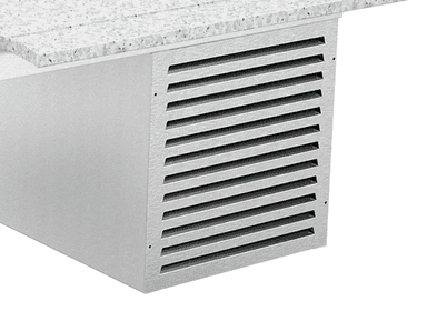 Built-in refrigerated showcase dim. 4GN1/1. Ventilated refrigeration with cold distribution; the temperature is regulated by an electronic thermostat. The well is equipped as standard with a bottom adjustable in height to allow the best exposure of bottles and food. 3 Tempered glass shelves enlighted by 2 vertical LED bars that provide an uniform lighting. The public front can be equipped with front flaps in Plexyglass to reduce the dispersion of cold or completely closed by double-chamber athermal glass. On the operator side there are sliding doors with double glazing with accompanied automatic closing. Equipped with self-evaporating tray to manage the condense water.