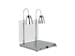 AISI 304 stainless steel carving station GN 1/1 size with single white infrared lamp mounted on a flexible tube, with a classic (P1) or modern (P2) design lampshade. Heated warming plate with mechanical thermostat (+30°/+90°) and indicator light. Infrared lamp with indipendent lighting switch. Acrylic glass sneezeguard included.