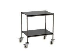 2 Tiers service trolley with structure in chromed round tube and laminated wood shelves with a wide choice of decors. 4 Non-marking bumpers and swiveling castors Ø100 mm included. Chromed or black nickel round tube structure.