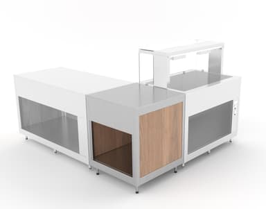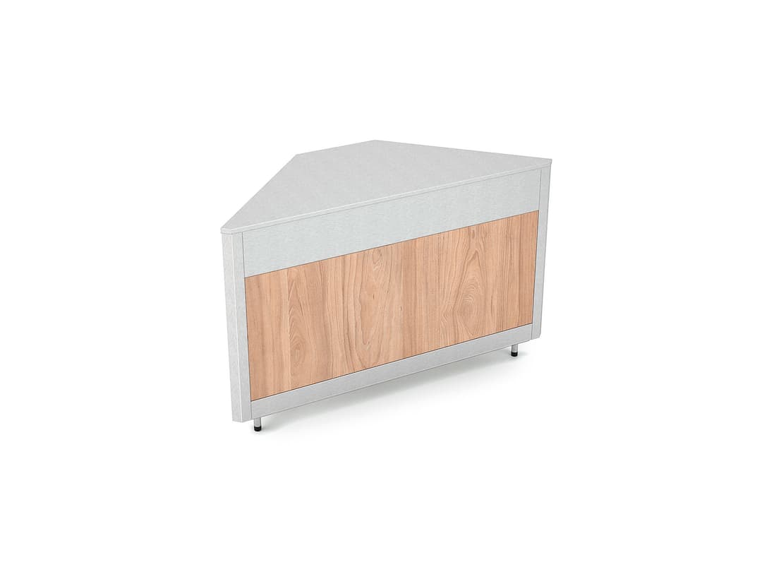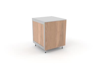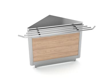 Corner 45° / 90°with different shapes to connect the Omnia modules and create a self service line that adapts to your spaces. Stainless steel structure and panelling in standard laminated wood or with over-panelling (SPP). The panels are also available in stainless steel (SST) and painted steel (CST). Structure on adjustable feet that can be masked by a plinth. Castors Ø125mm are not suitable with the Omnia A modules, except the AQ version.