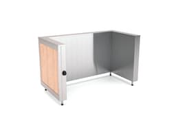 Roll-in counter in stainless steel structure and laminated wood paneling. The panles are availbale also in stainless steel or powder coated.