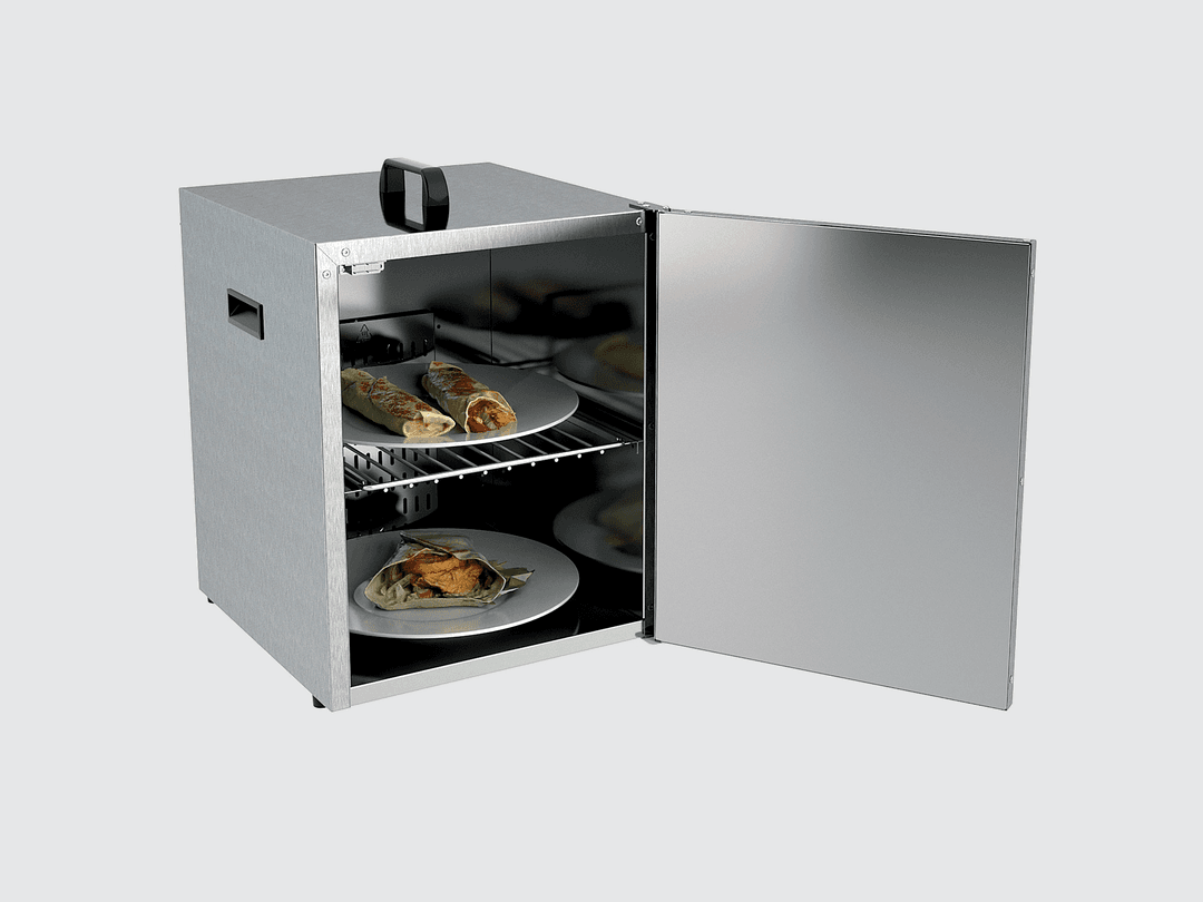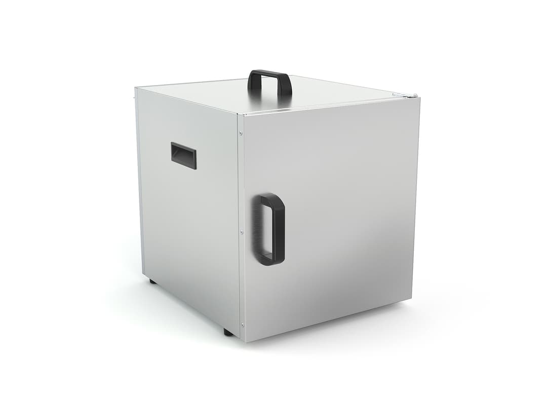 Hot, cold or neutral box for room service. Entirely made of AISI 304 stainless steel with double insulated wall. Built-in and automatic thermostat preset at 70° with lighting power button to indicate its operation. Supplied with 1 inner fixed grid. Suitable for dishes up to Ø32cm. Net weight 14Kg.