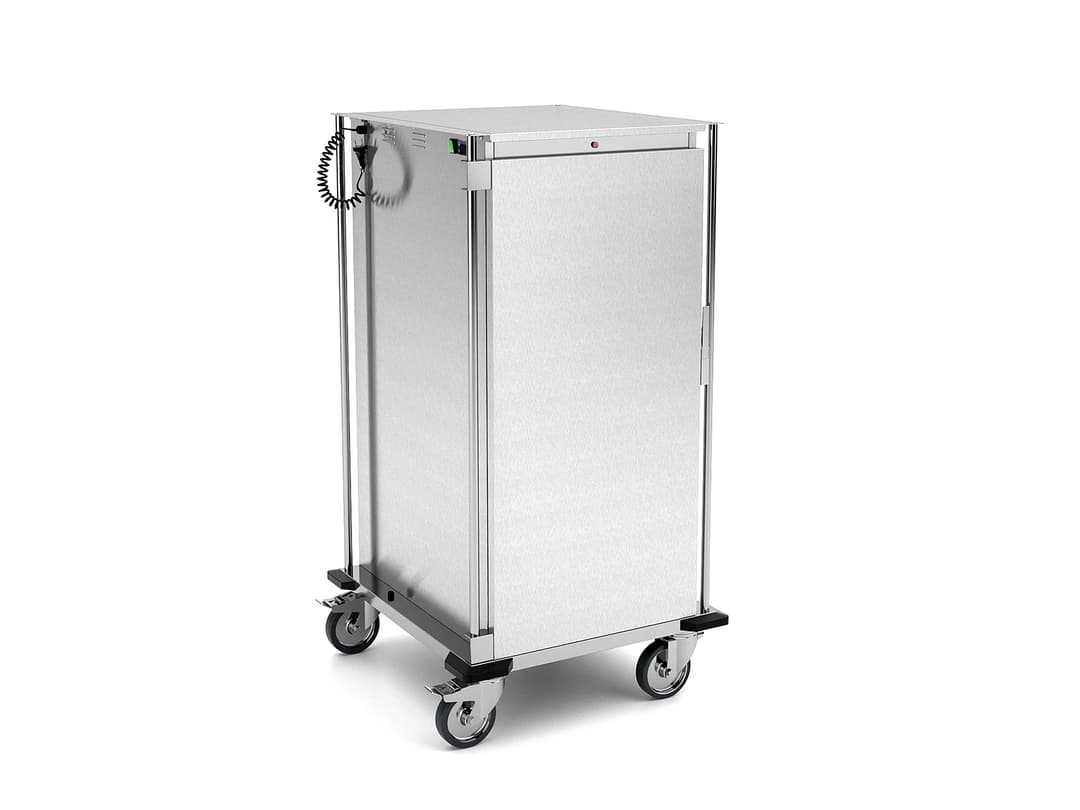 Heated cabinets on wheels in AISI 304 stainless steel suitable to meet all space requirements: from the use in the kitchen, the transport to external locations or the storage in small spaces. They can store and maintainf GN-pans, trays or baking tins in size 1 GN 1/1.