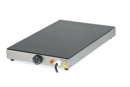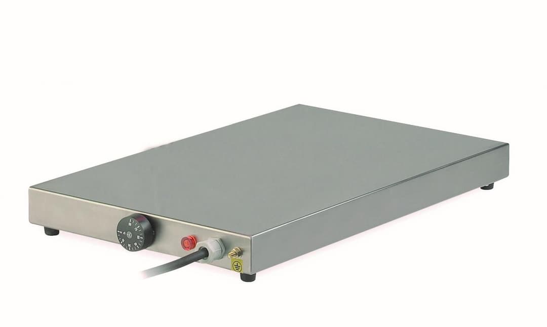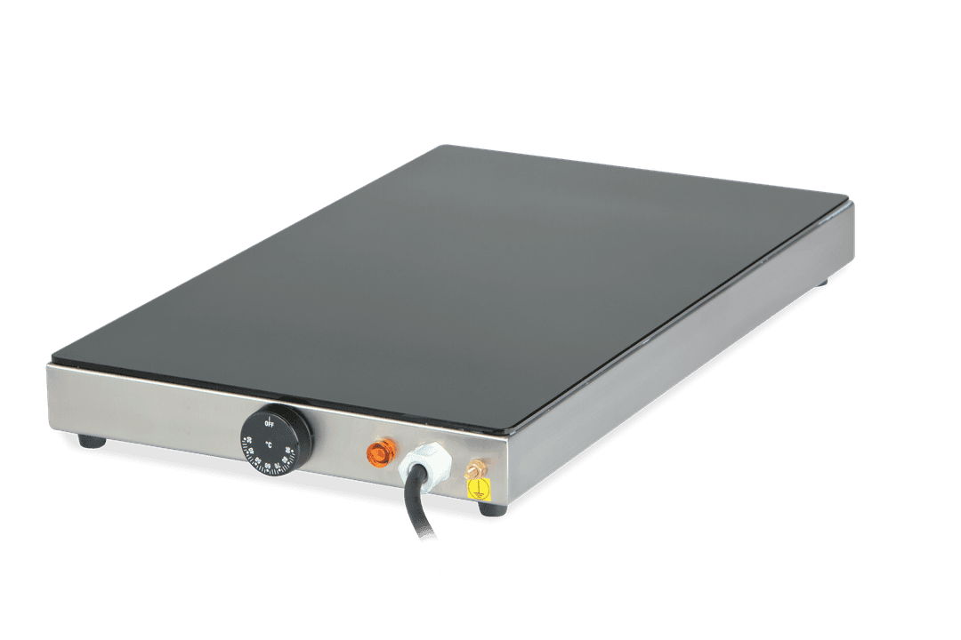 AISI 304 Stainless steel or black tempered glass shelf (VULCANO G only) warming plate. Dry-heating with heating elements placed underneath the shelf, temperature controlled by mechanical thermostat (+30°/+90°C) with indicator light.