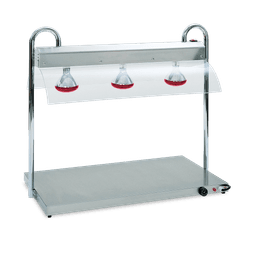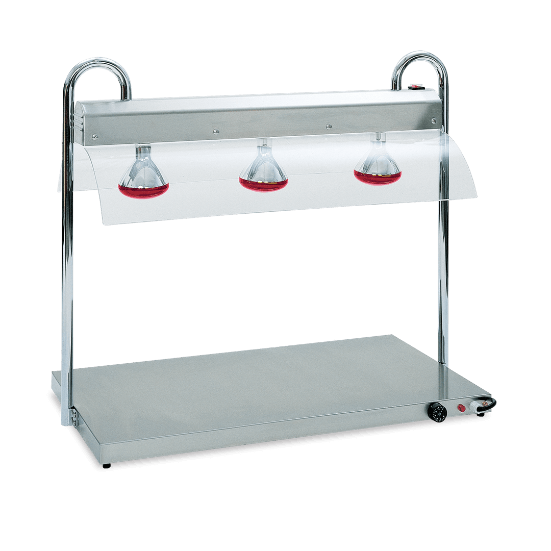 AISI 304 Stainless steel warming plate completed with infrared lamps stand. Dry-heating with heating elements placed underneath the shelf, temperature controlled by mechanical thermostat (+30°/+90°C) with indicator light. Infrared lamps with indipendent lighting switch.