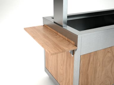 Refrigerated display case with laminated wood structure for the fish-pastry or cheese presentation. Well 18 cm deep and equipped with drain cock. The well is protected by a semispherical Plexyglass dome with double opening.
